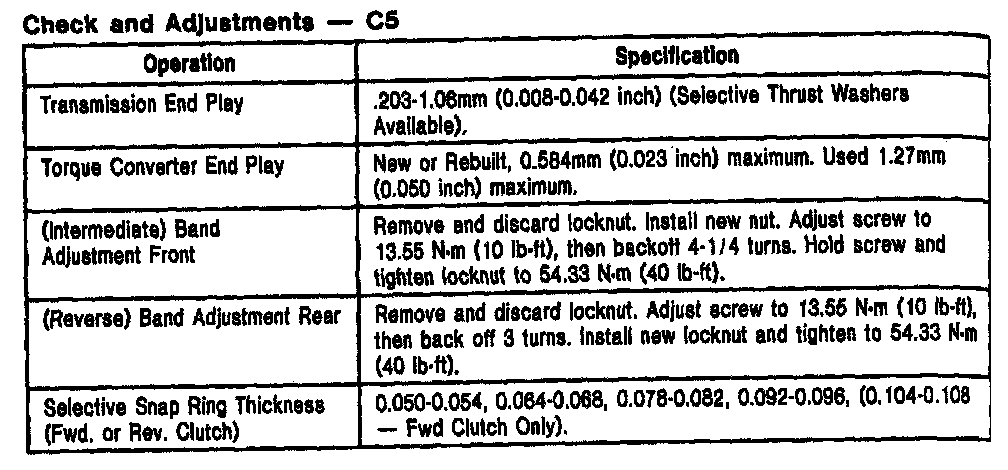 C-5 3-spd A/T, Converter End Play: