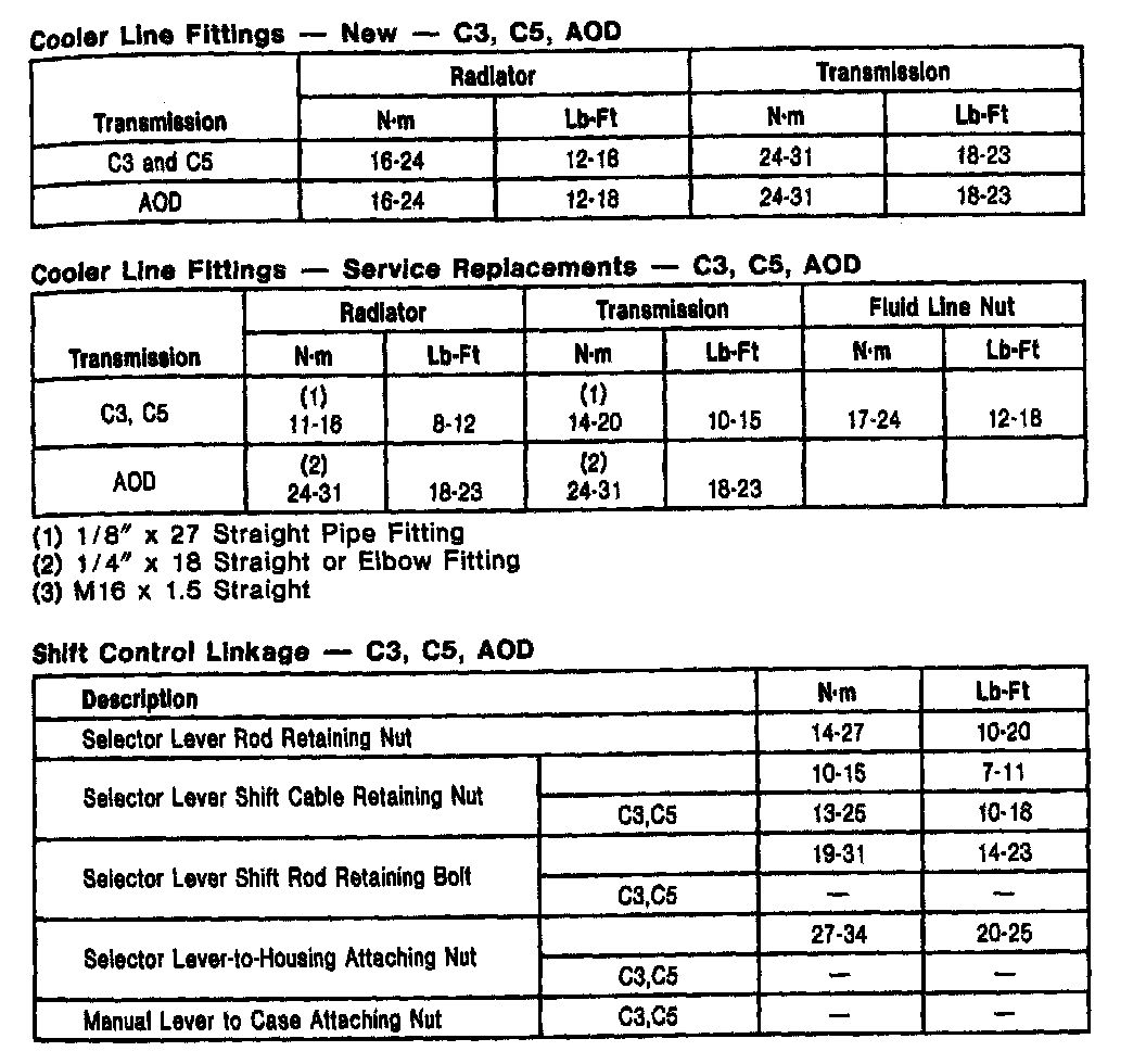 C-5 3-spd A/T, Cooler Fittings/Control Linkage: