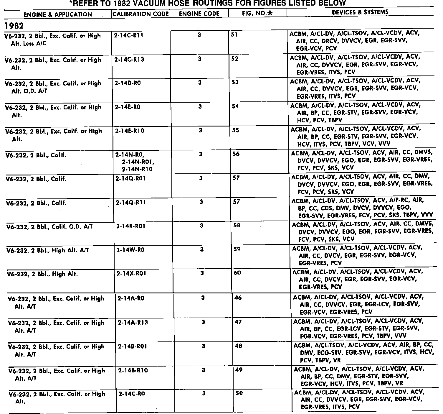 Home >> Ford >> 1982 >> Thunderbird V6-232 3.8L >> Repair and Diagnosis >> Powertrain Management >> Emission Control Systems >> Application and ID >> Emission System Application Chart