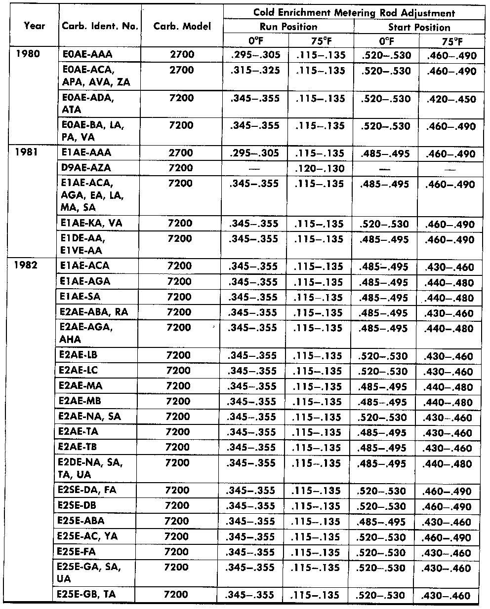 Cold Enrichment Metering Rod Adjustment Specification