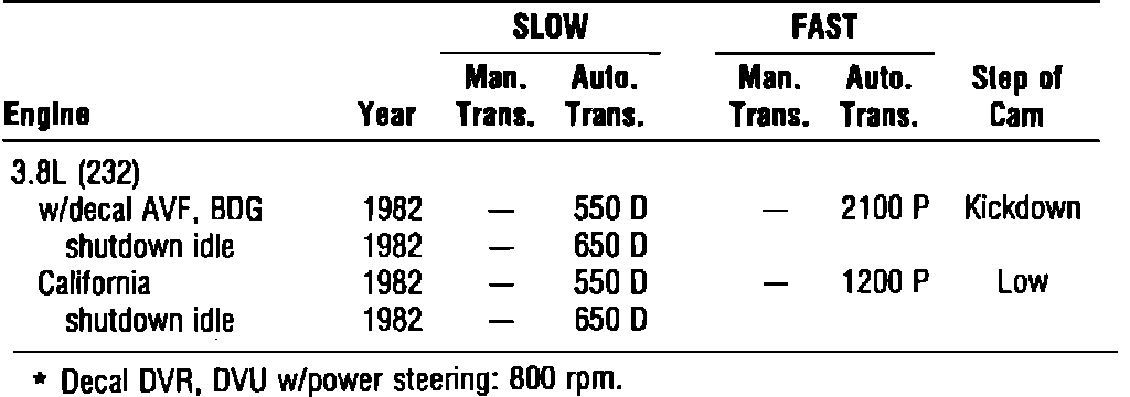 Idle Speed Specifications: