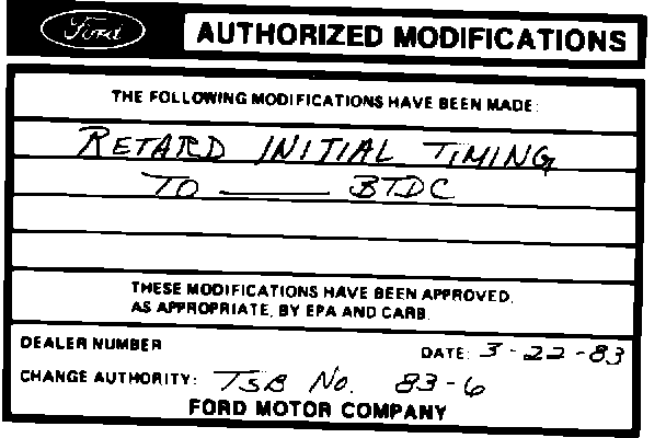 Obtain an Authorized Modifications decal and list the date, dealer number and summary of alterations performed. Select a prominent place adjacent to the Vehicle Emission Control Information decal suitable for installing the Authorized Modifications decal. Clean the area, install the decal and cover it with a clear plastic decal shield.