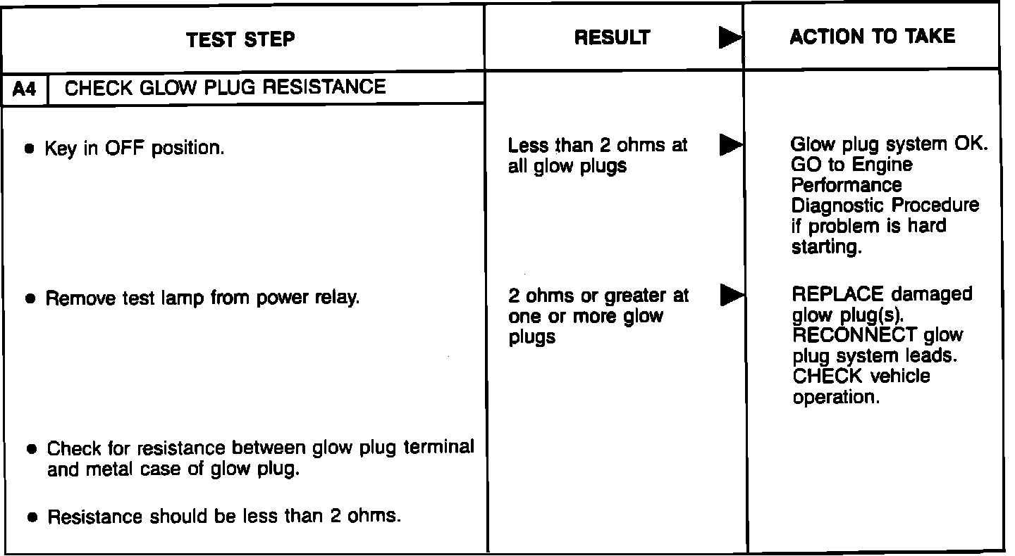 Glow Plug Lamp Basic Test: