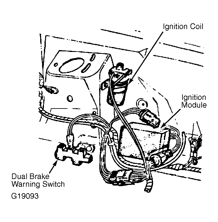 | Microprocessor Control Unit (4-Cyl.) | On left fender apron, next to ignition coil. See Figure. |