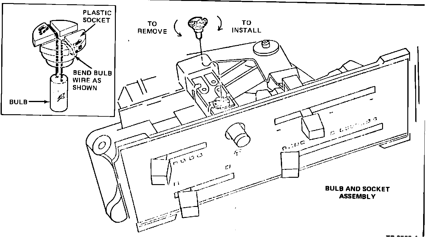 9. Pull the control assembly out from the instrument panel opening. Then, rotate the bulb plastic base 1/8 turn counterclockwise and lift the bulb and base from the push button switch.