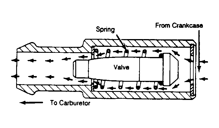When the engine is started, manifold vacuum pulls the PCV valve open against spring pressure. As long as there is engine vacuum, crankcase fumes are allowed to enter the intake manifold.