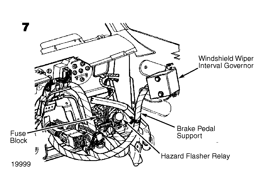 Hazard Flasher On rear of fuse block. See Figure.