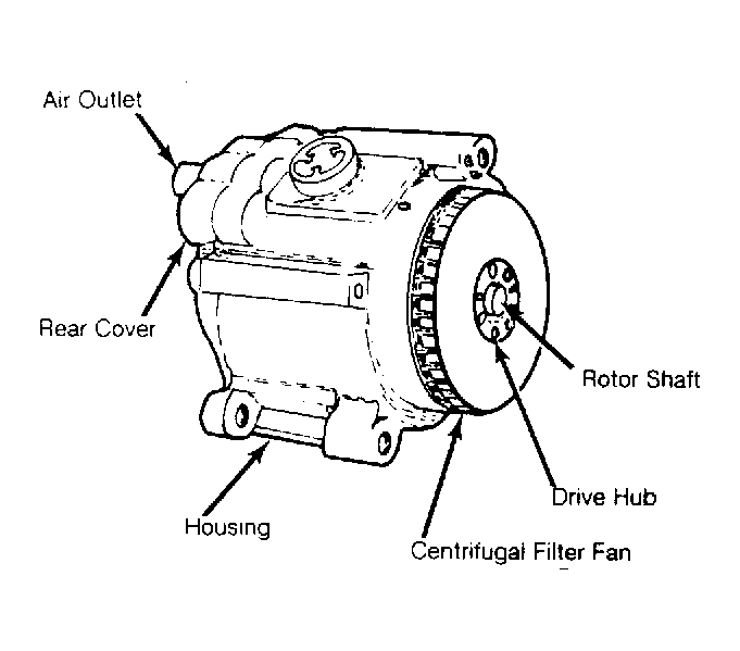The air pump uses an eccentric (off-center) vane to draw in fresh air, compress it, and force it on through the system. The pump is belt-driven. See Fig 1 .