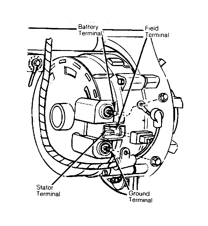 Alternator is belt driven from engine. Current is supplied from Alternator-Regulator system to rotating field of alternator through 2 brushes to 2 slip rings. Power is produced in the form of alternating current which is rectified to direct current by 6 diodes. Alternator regulator automatically adjusts alternator field current to maintain alternator output voltage within prescribed limits to correctly charge battery. Charging systems are equipped with a fuse link between starter relay and alternator "BAT" terminal.