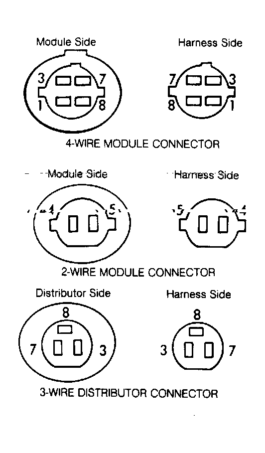 The Black wire is used to ground the electronic control module through the distributor housing. On models with an JIM module, the additional 3 wires connect to either a vacuum modulator valve or a barometric pressure switch.