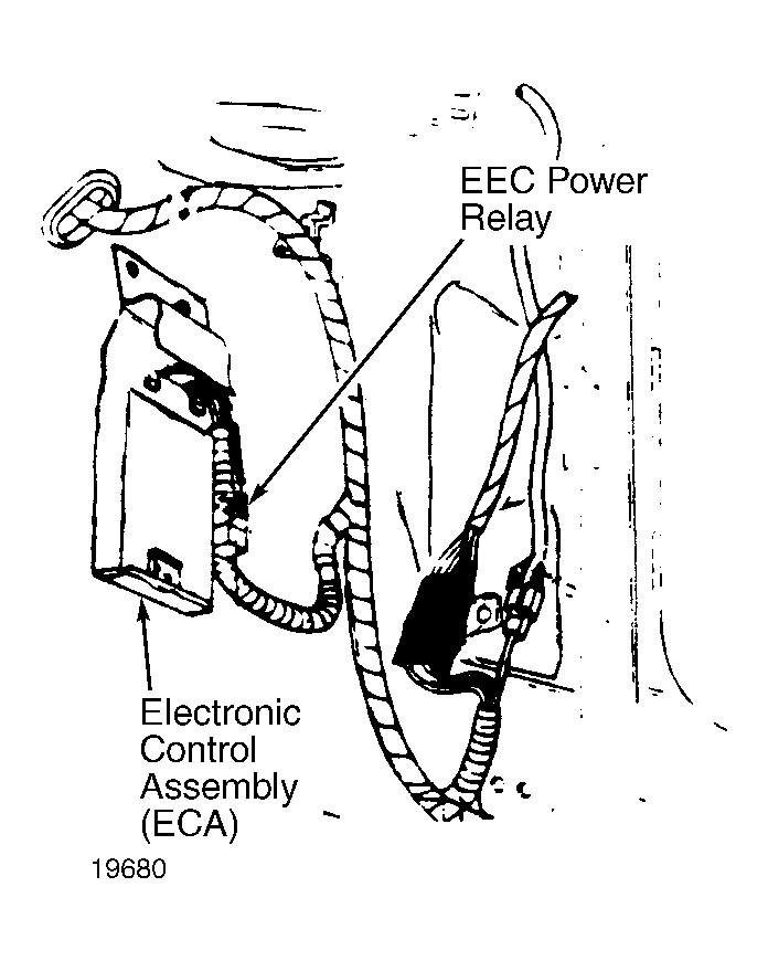 | Electronic Control Assembly (ECA) | On lower right cowl. See Figure. |