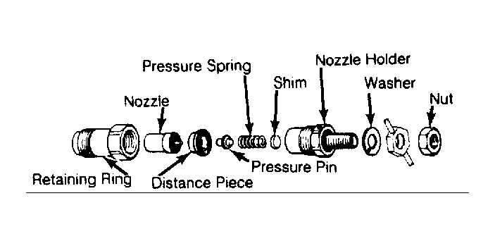 The injection nozzles spray fuel into a prechamber as each compression stroke occurs. Nozzles can be disassembled, cleaned and adjusted to correct improper spray patterns.