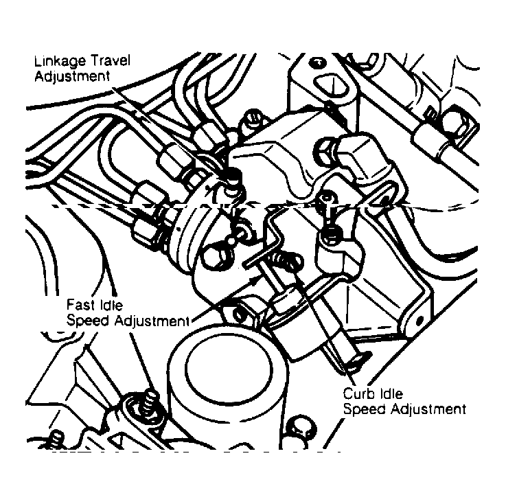 - Adjust fast idle speed if necessary by turning solenoid plunger. Rev engine and recheck fast idle speed. Readjust if necessary. Remove battery voltage from solenoid and reconnect harness. See Fig 1 .