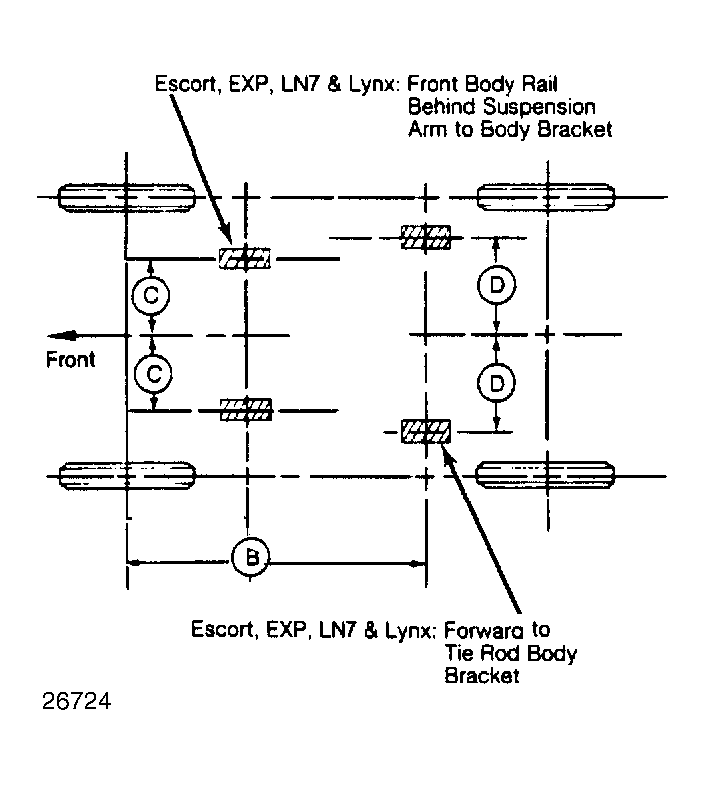 Ensure that hoist manufacturer's instructions are followed. DO NOT allow hoist or adapters to contact suspension, exhaust or steering components. Frame contact must be made and adapters used to lift vehicle in accordance with Frame Contact Chart and Fig. Figure.