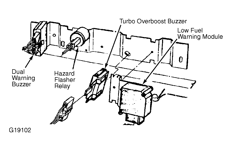 | Low Fuel Warning Module | Behind right side of dash, above glove box. See Figure. | |