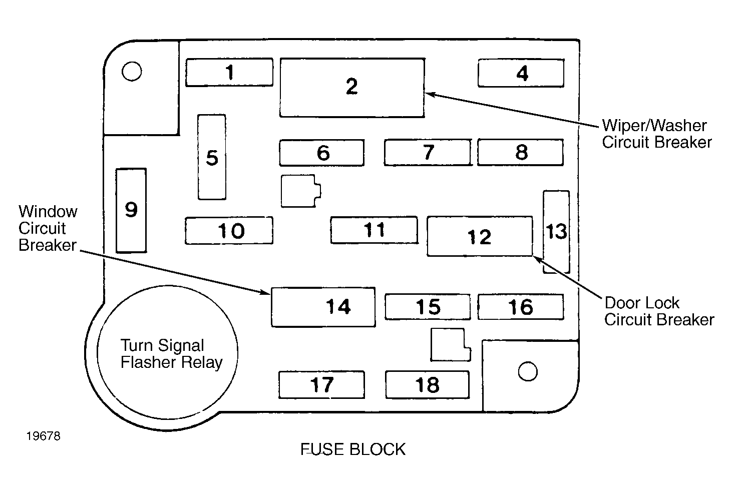 | Door Lock Circuit Breaker | In cavity 12 of fuse block. See Figure. | |