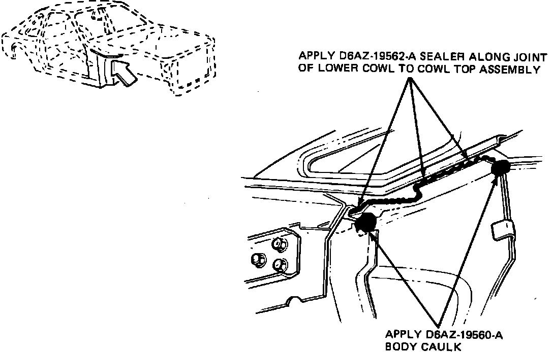 5. Apply D6AZ-19562-A Sealer along joint of lower cowl to cowl top assembly (Figure 17).