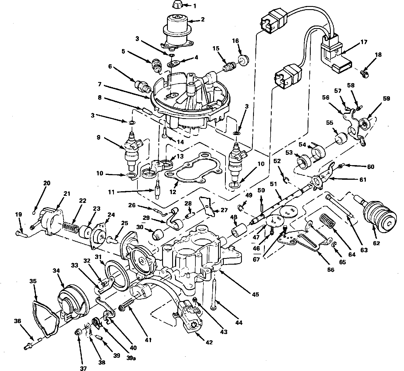Fig. 15b Fuel charging assembly exploded view. V8 engine units shown, V6 engine units similar: