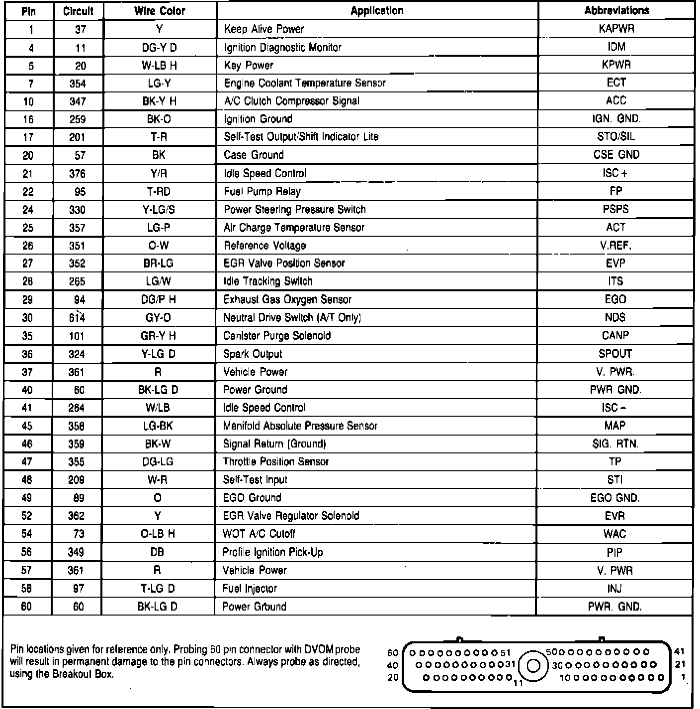 Fig. 159 EEC-IV module connector pin usage. 1985 4-140 high swirl combustion (HSC) engine W/CFI:
