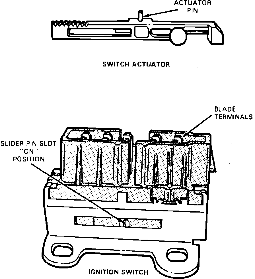 7. Check to ensure that ignition switch actuator pin slot and ignition switch lock cylinder are in the Run position. Replacement ignition switches are set in the Run position. The Run position on the ignition switch lock cylinder is located approximately 90° from the lock position.