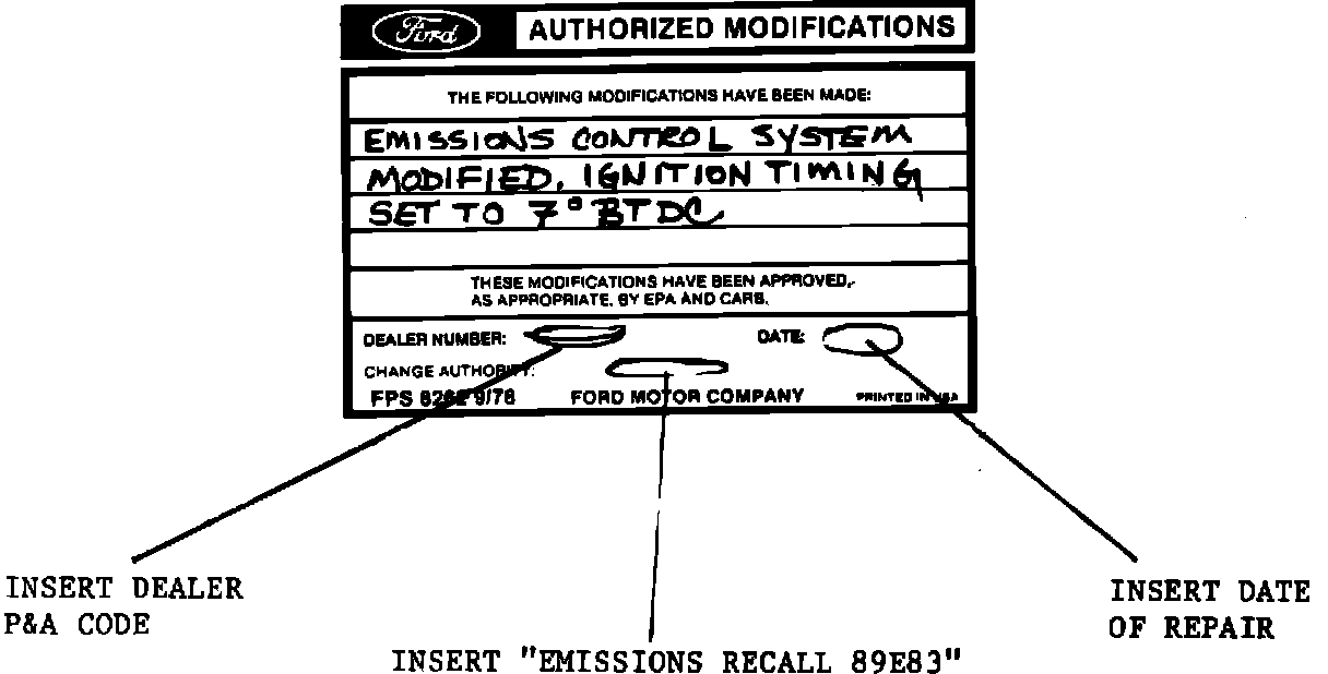 Home >> Ford >> 1986 >> Midsize LTD V6-232 3.8L >> Repair and Diagnosis >> Powertrain Management >> Ignition System >> Ignition Timing >> Technical Service Bulletins >> Recalls >> Recall - Emissions Control Modifications >> Modifications Decal