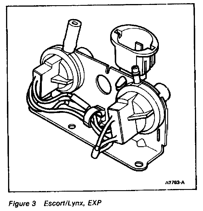 This dual vacuum switch assembly (S1 normally OPEN, and S2 normally CLOSED) is used in the 1.9L engine with MTX for controlling the shift light sequence. The switching point for the switches is 6.0 ±0.5 inches of vacuum.