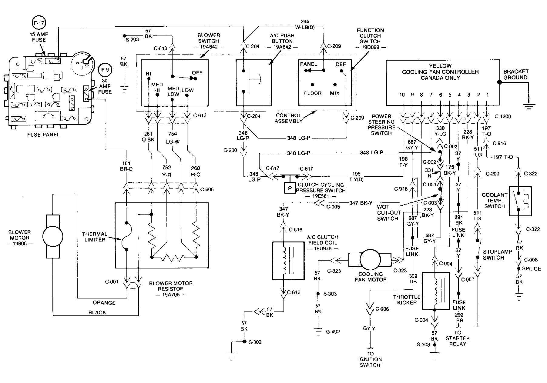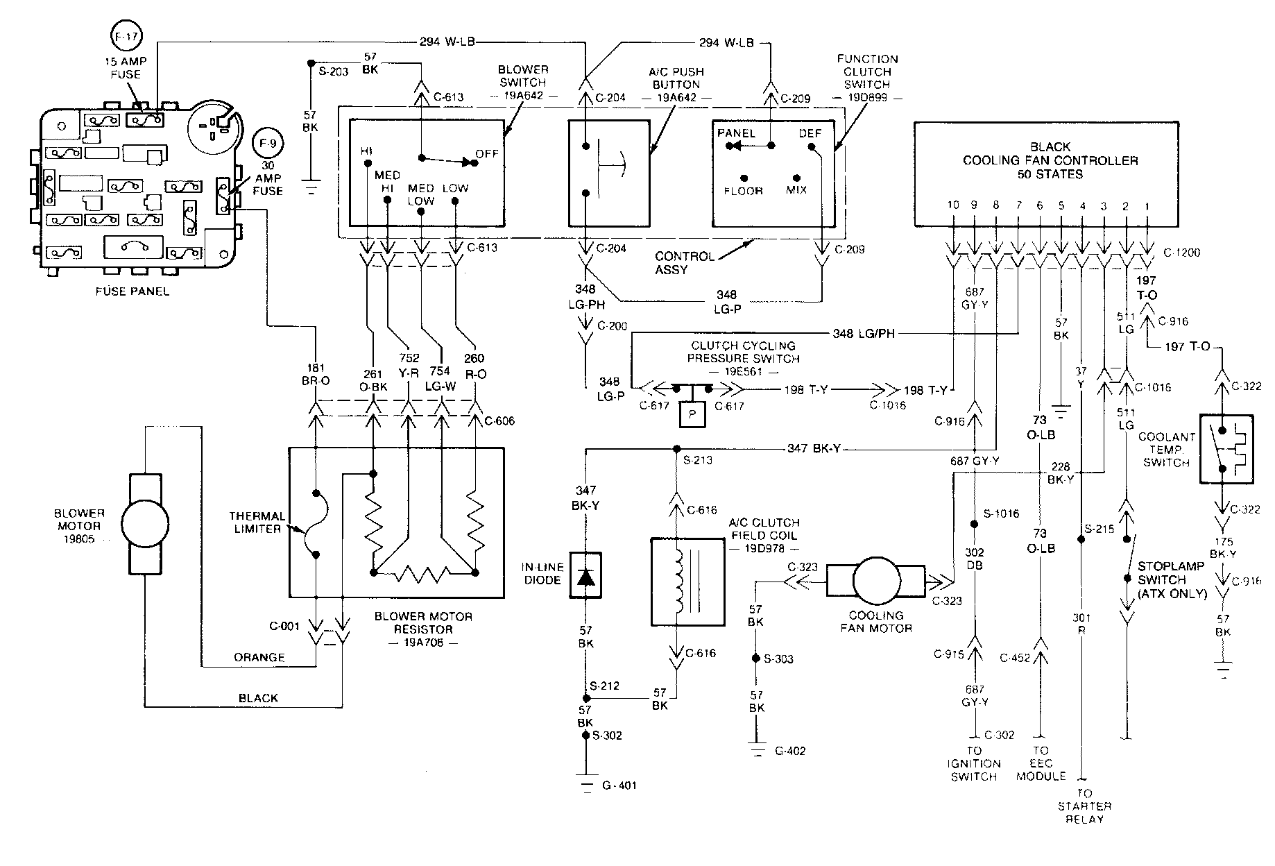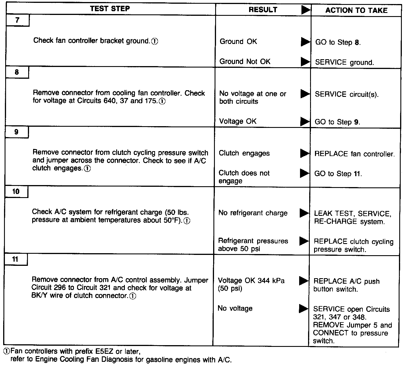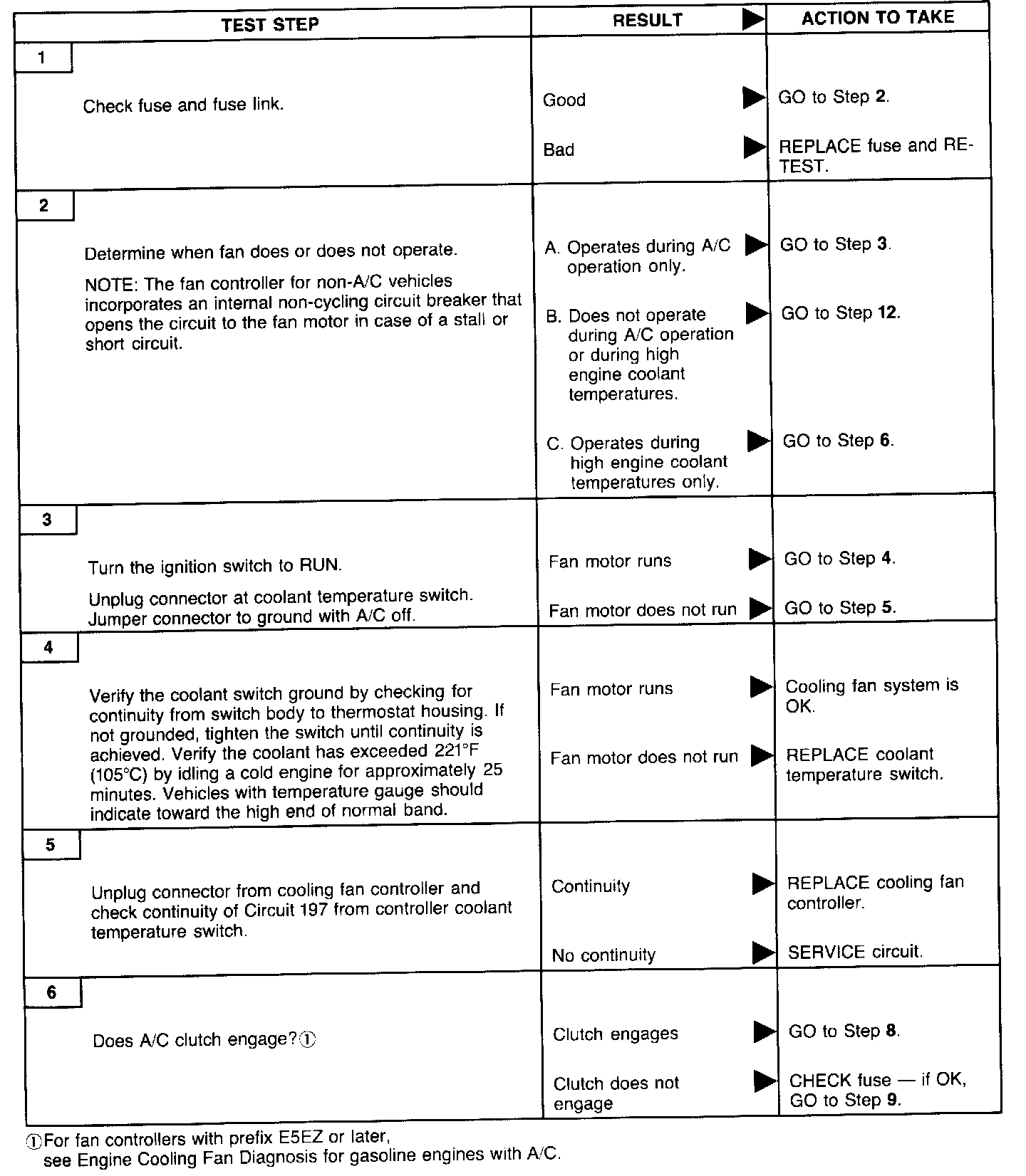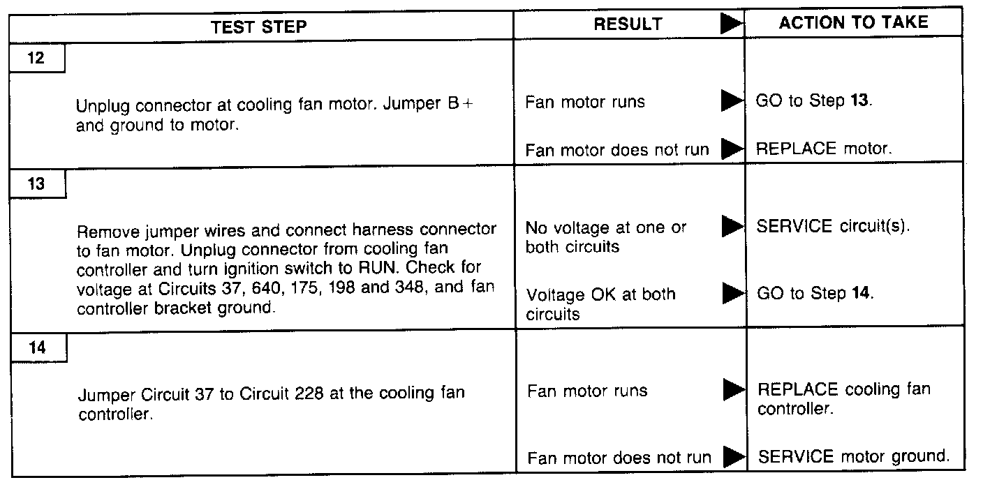 Once it has been determined that the cooling fan controller is not at fault, the following diagnostic charts can be used to check the rest of the cooling fan system to pinpoint the problem.