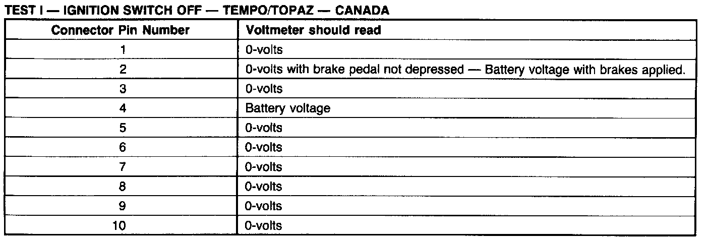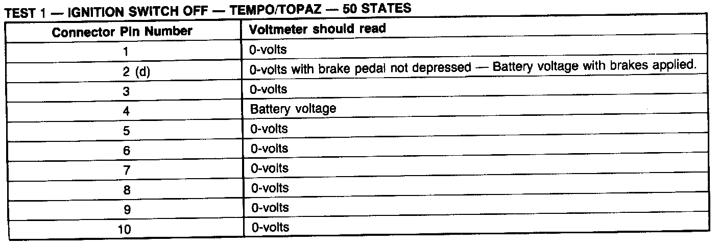 Test 1: Ignition Switch In OFF: