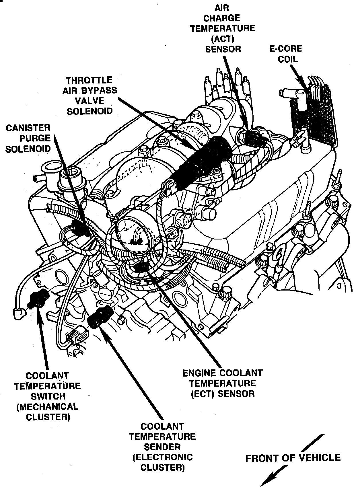 Coolant Temperature Sensor/Switch (For Computer): Locations