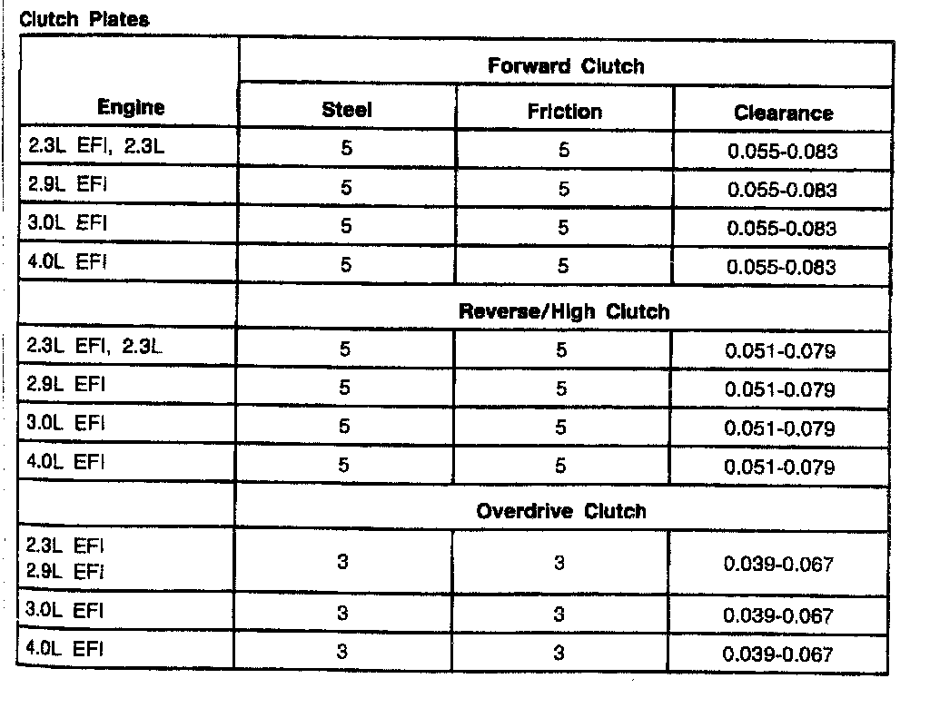 A4LD 4-spd A/T, Clutch Plate Clearances: