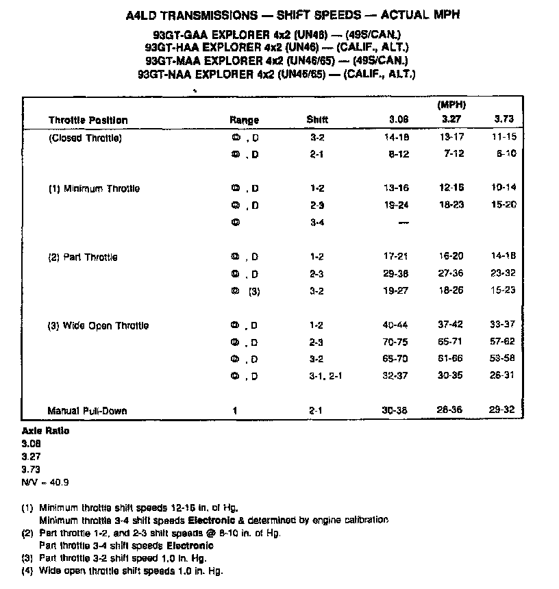 A4LD 4-spd A/T, Shift Speeds (Explorer):