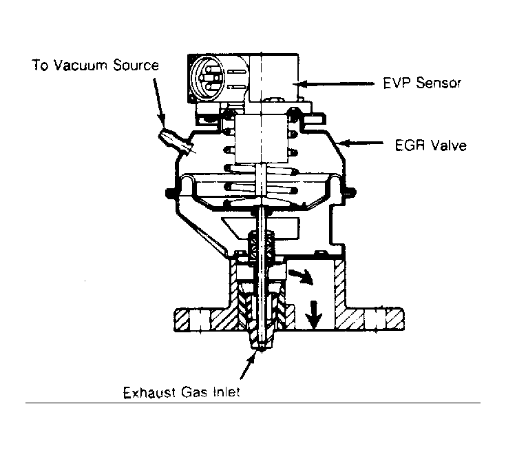 The Electronic EGR Valve System is controlled by the ECA. An EVP sensor mounted on top of the EGR valve sends an electrical signal of the EGR valve's position to the ECA. The ECA sends an electrical signal to the Electronic Vacuum Regulator (EVR) to control vacuum to the EGR valve. See Fig 1 .