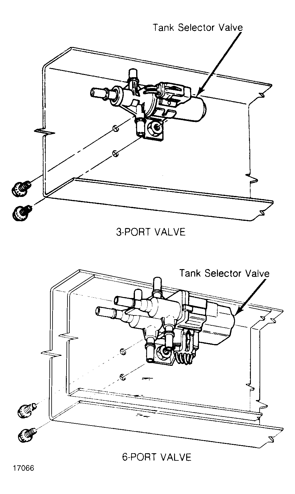 A 3-port electrically actuated fuel tank selector valve is used on Ford 150 and 350 series models. Other Ford models use a 6-port selector valve. See Fig 1 .
