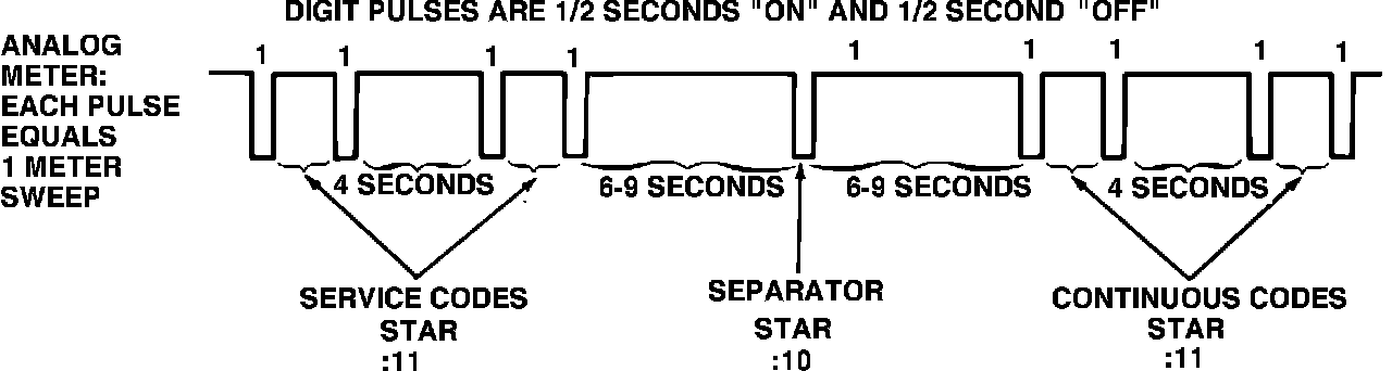 4. Six to nine seconds off-time before and after the half-second separator pulse.
