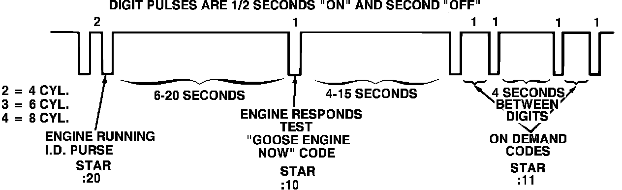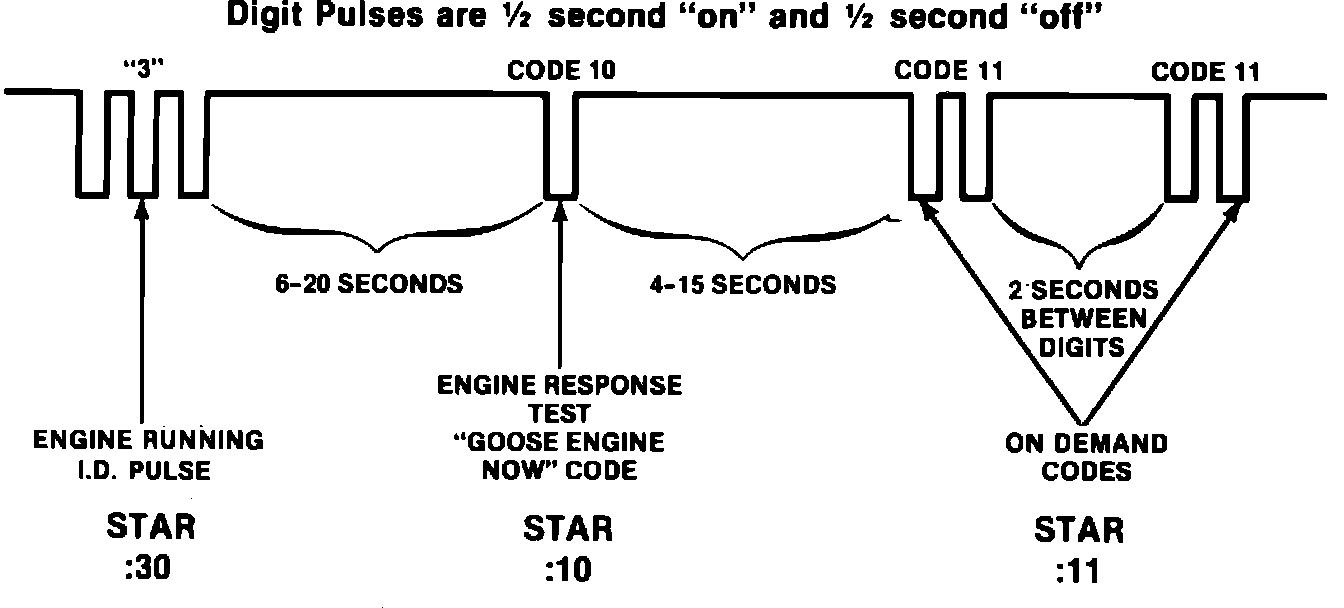 The EEC-IV system transmits its information by the use of the self-test service codes. These service codes are two digit numbers representing the results of the self-test. The service codes are transmitted on the self-test output (found in the self-test electrical connector) in the form of time pulses, and read by the use of a voltmeter or a STAR tester.