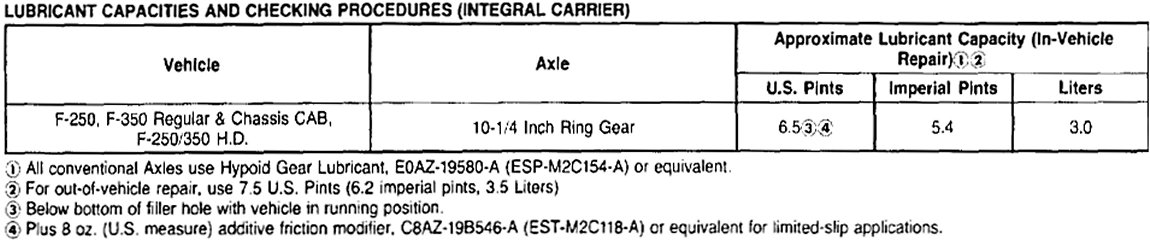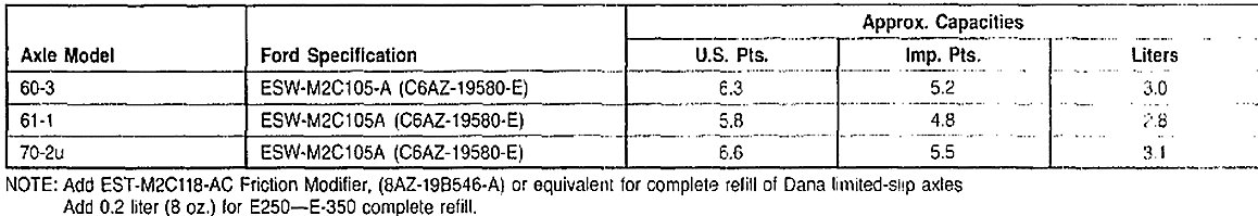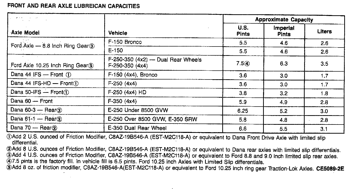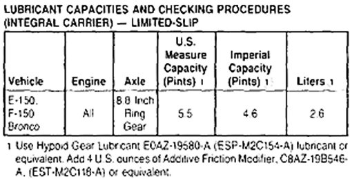 Front and Rear lubrication Capacities