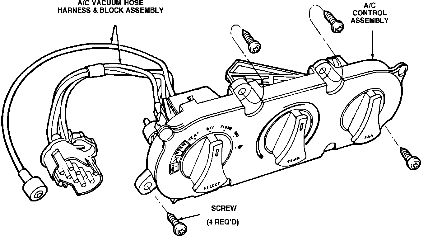 4. Pull control panel out of console and disconnect electrical connectors, vacuum lines and temperature control cable.