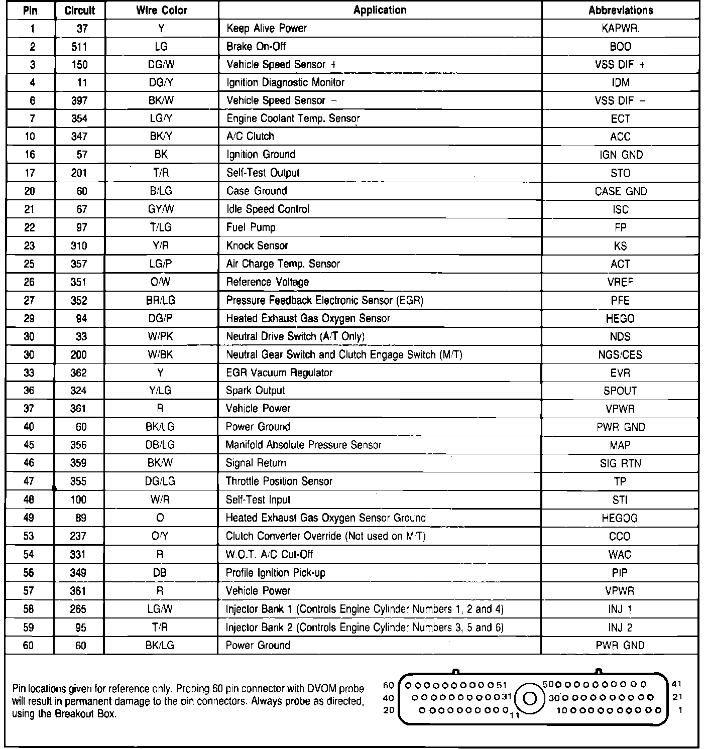 Fig. 205 EEC-IV connector terminal identification. 1987 V6-177: