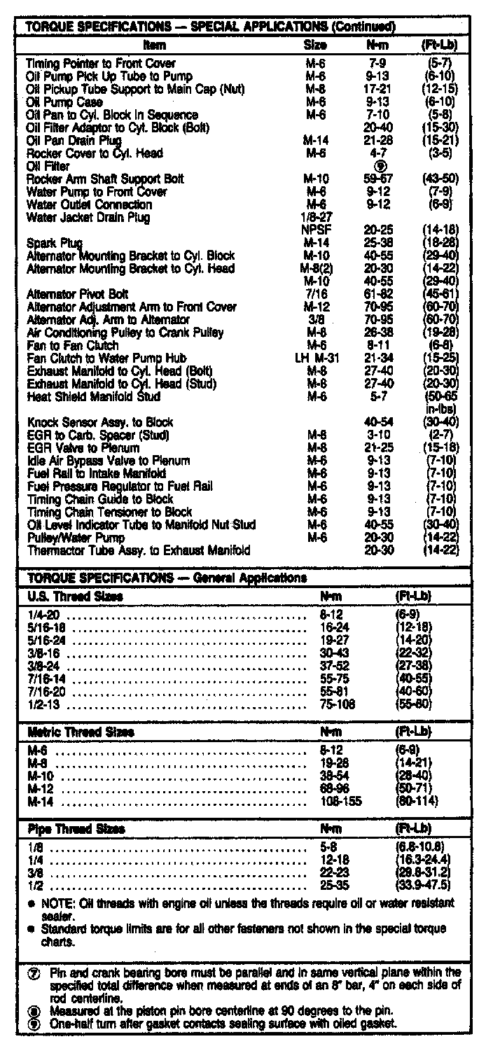 Torque Specifications