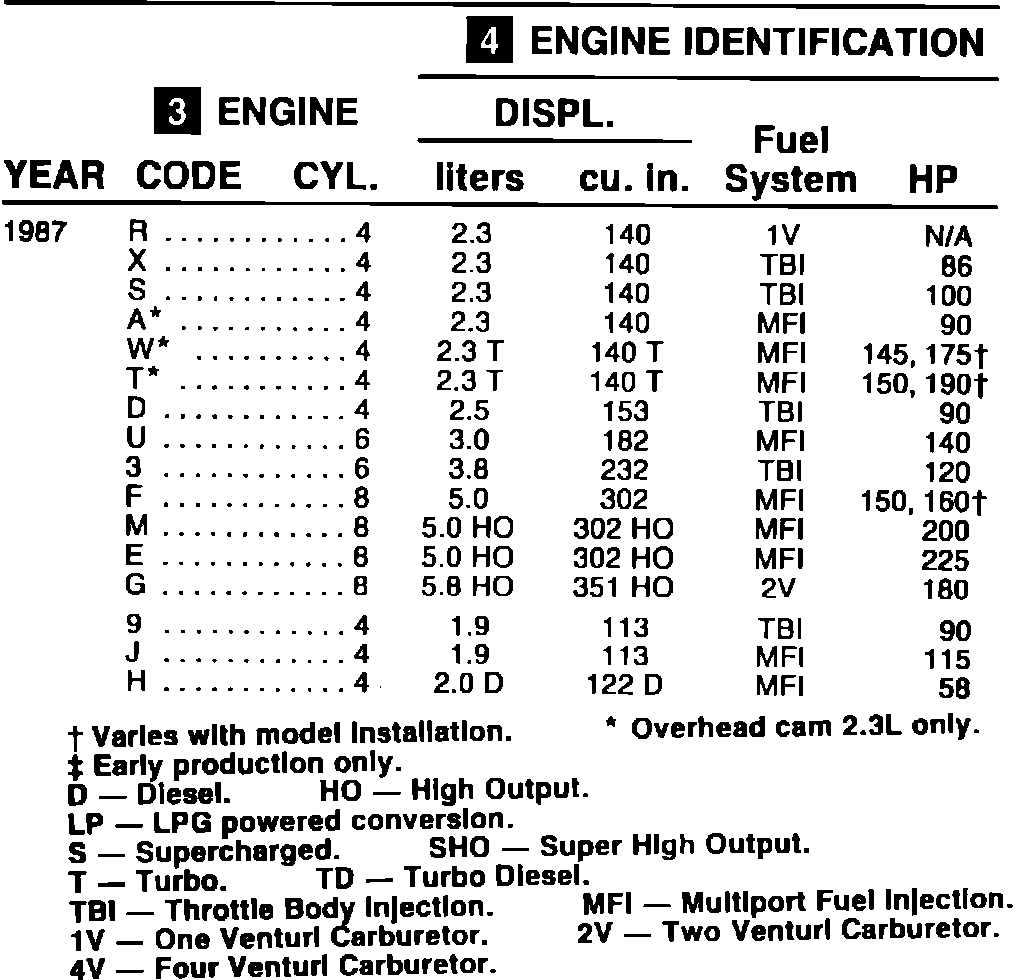 Home >> Ford >> 1987 >> Taurus L4-153 2.5L HSC >> Repair and Diagnosis >> Powertrain Management >> Application and ID >> Engine Identification