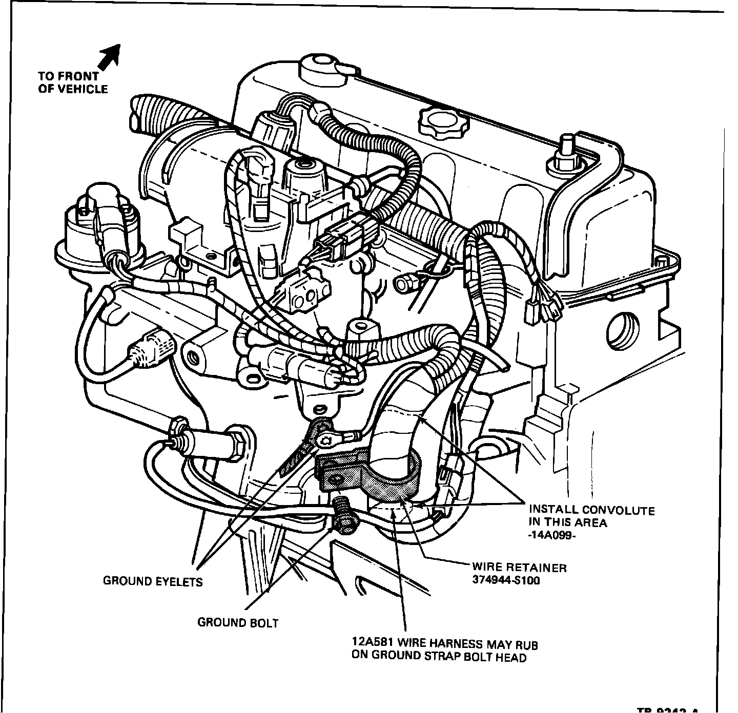 ACTION: To correct this, first inspect the 12A581 wire harness for damage. If the 12A581 wire harness is damaged, repair the wire harness, and install a piece of convolute using the following service procedure.