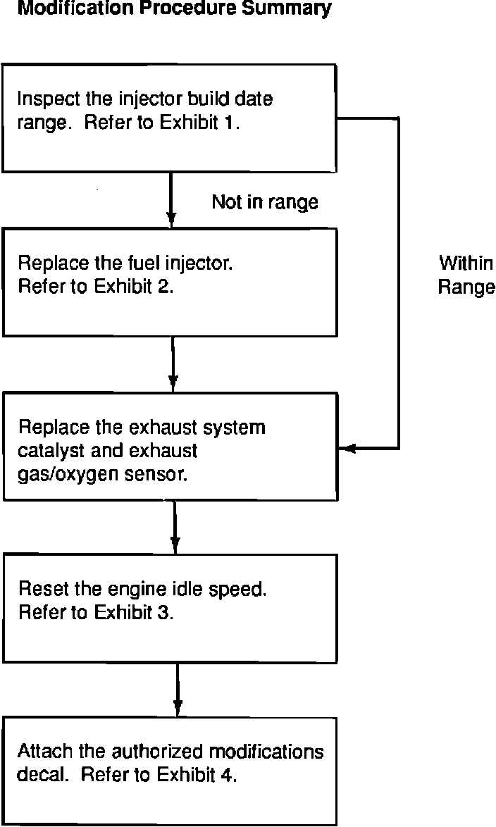 LABOR TIMES: Inspect the fuel injector build date and, if necessary, replace the injector, adjust the idle speed to specification, replace the exhaust system catalytic convertor, EGO sensor, prepare and attach an Authorized Modifications (Form FPS-8262) Decal.