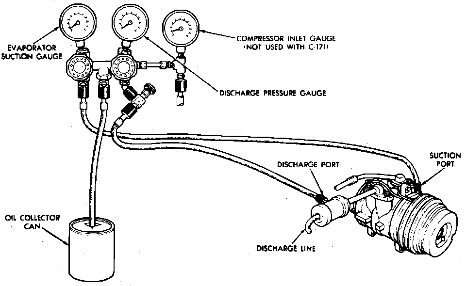 Discharging System Using Manifold Gauge Set. Nippondenso C-171 Compressor: