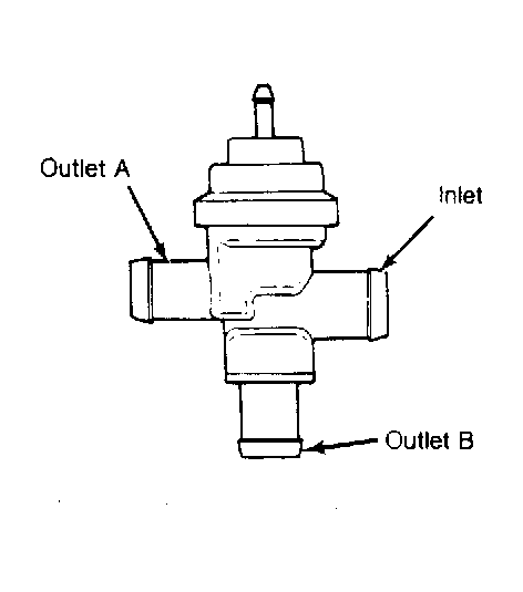 2. Using a direct vacuum line from manifold vacuum source, connect line to vacuum nipple. Airflow should be detected at valve outlet "A", and little or no air at valve outlet "B". If valve fails any test, replace valve. Reconnect all lines.