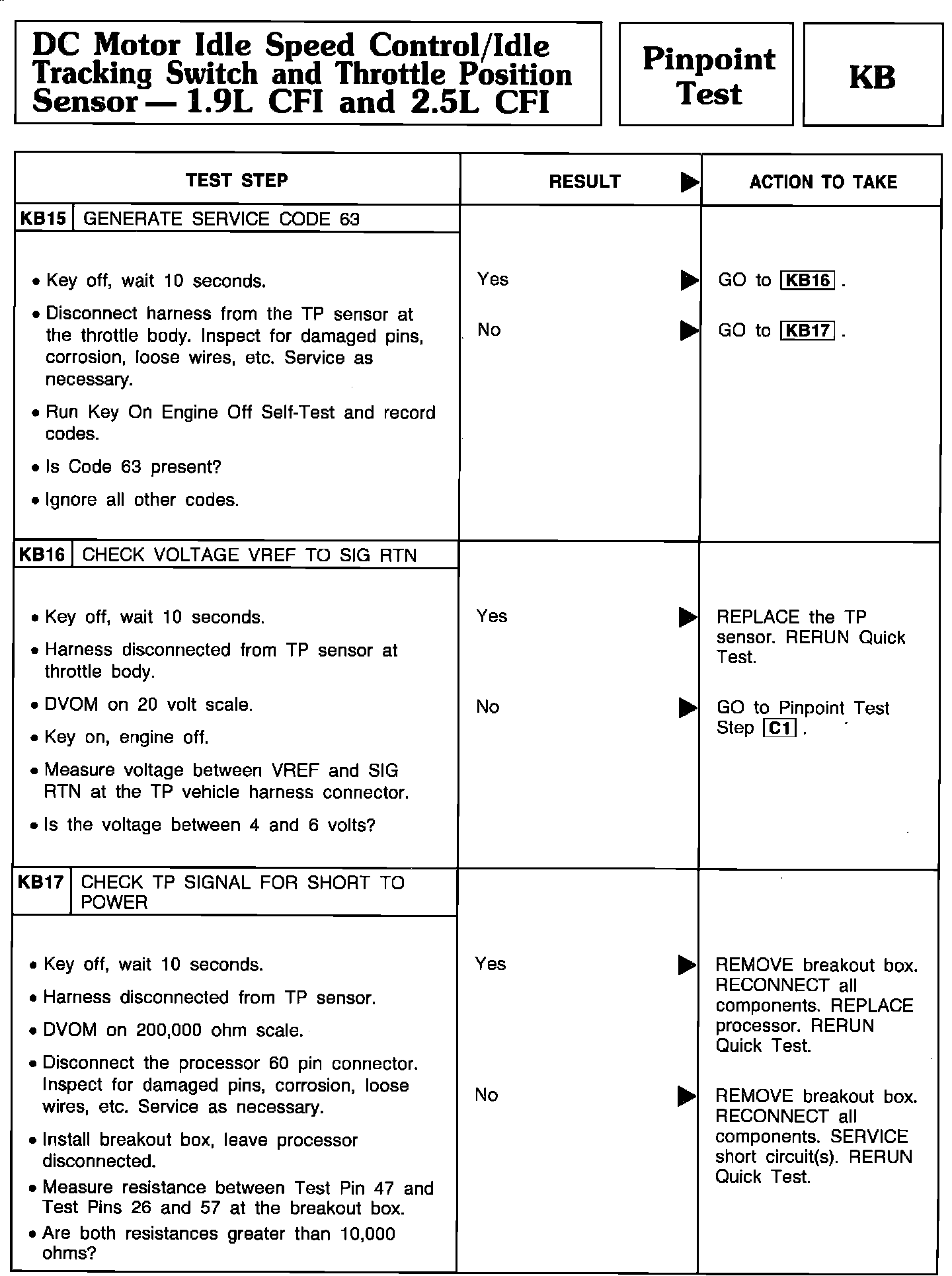Pinpoint Test KB15 Thru KB17 - DC Motor Idle Speed Control/Idle Tracking Switch/TPS: