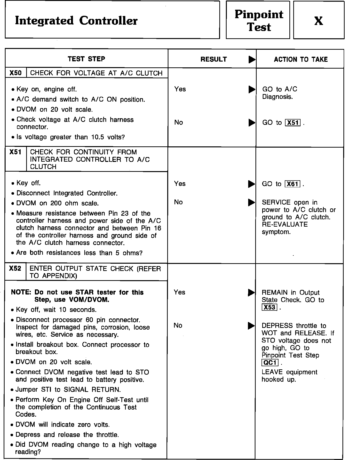 Pinpoint Test X50 Thru X52 - Integrated Controller: