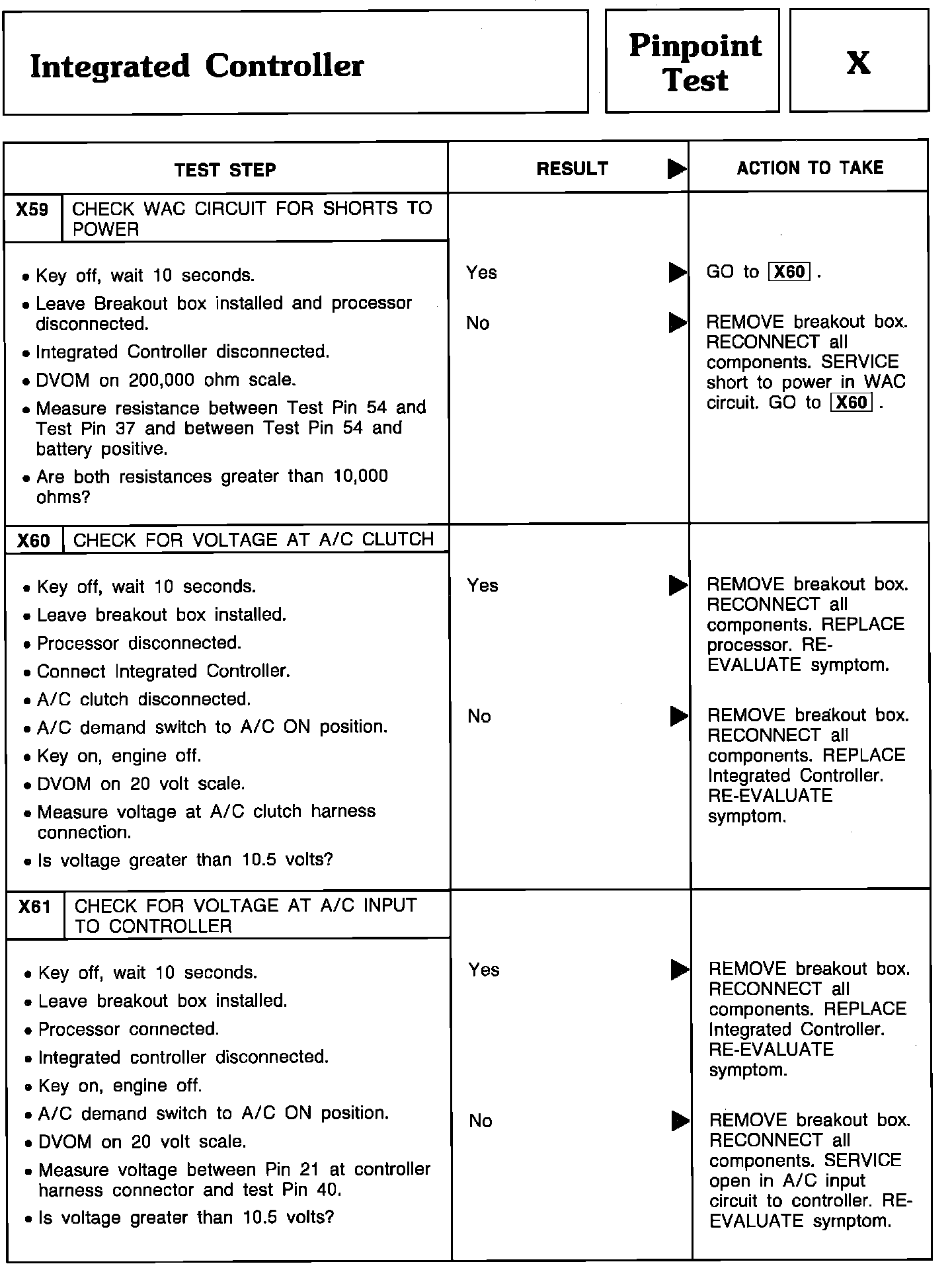 Pinpoint Test X59 Thru X61 - Integrated Controller: