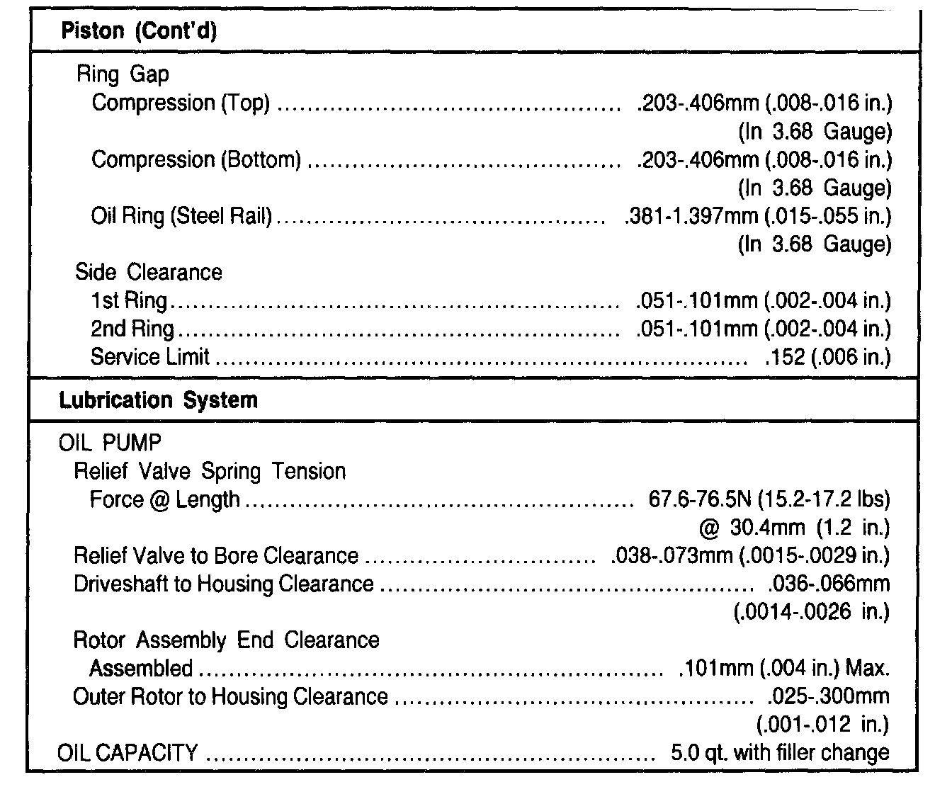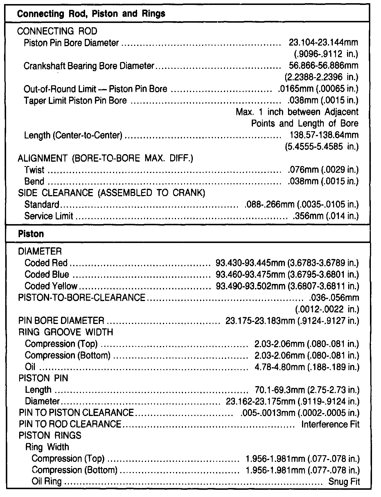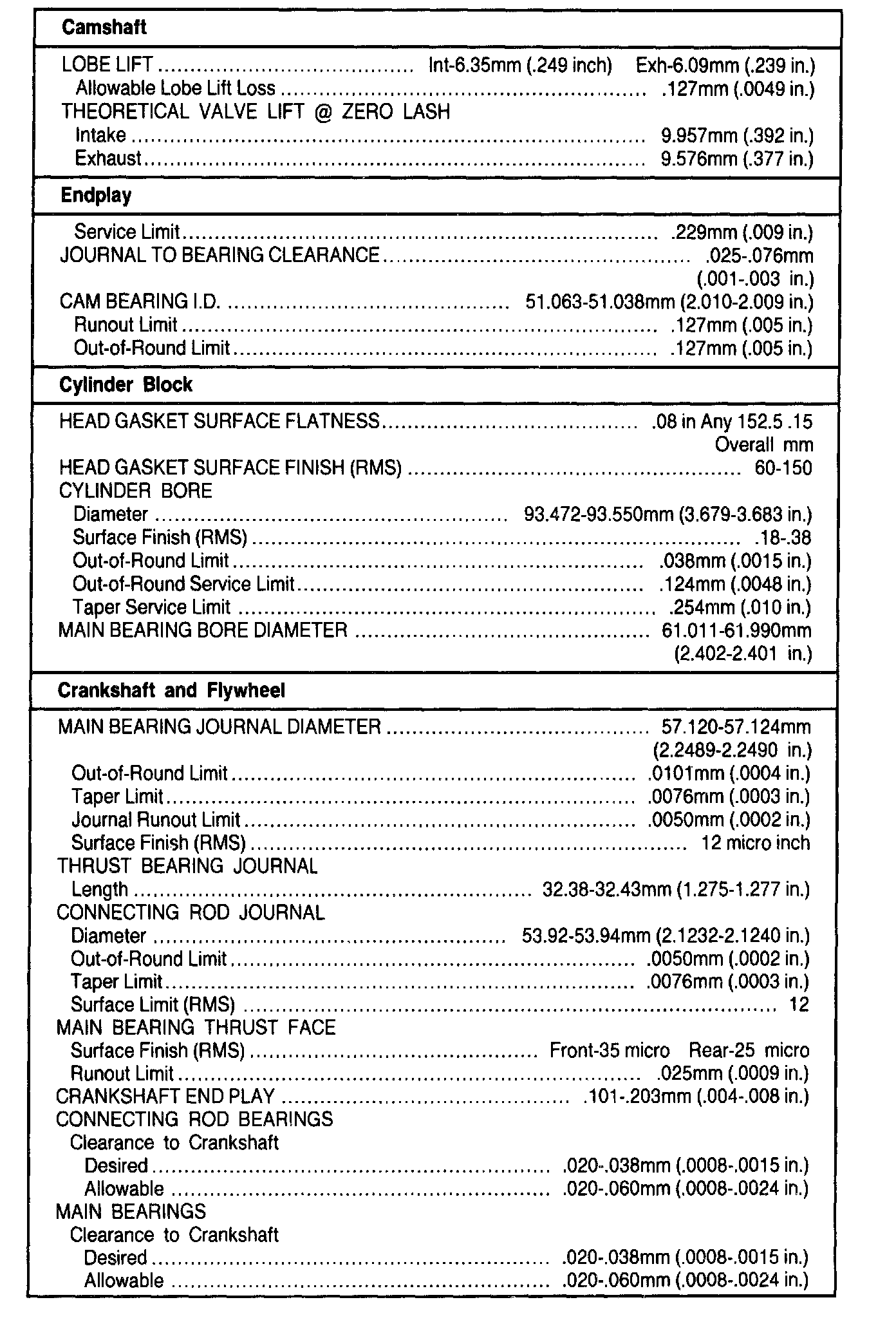 General Engine Specifications