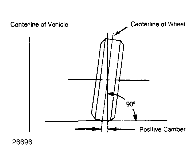 - When wheels tilts outward at the top (from centerline of vehicle), camber is positive. When wheels tilt inward at top, camber is negative. Amount of tilt is measured in degrees from vertical.