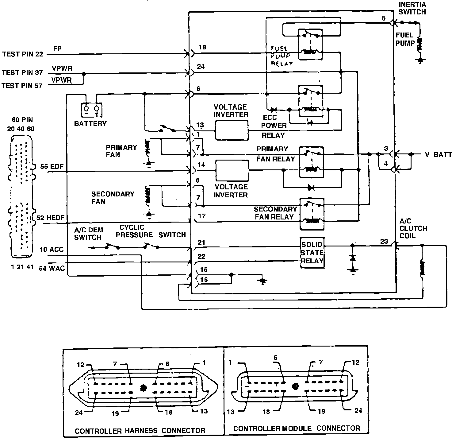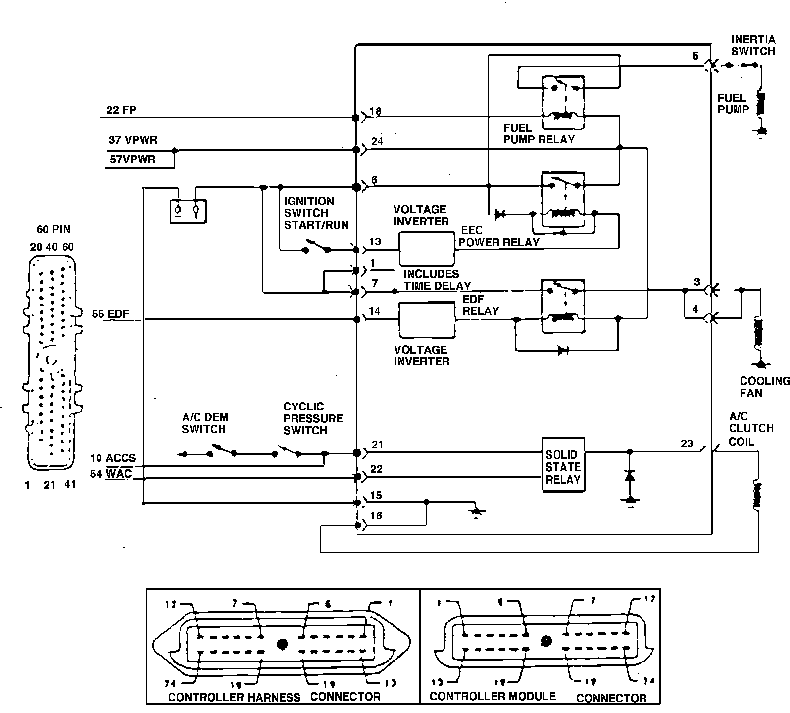 Electric engine cooling fan wiring diagram. Type 23 4-140/2.3L Turbo engine: